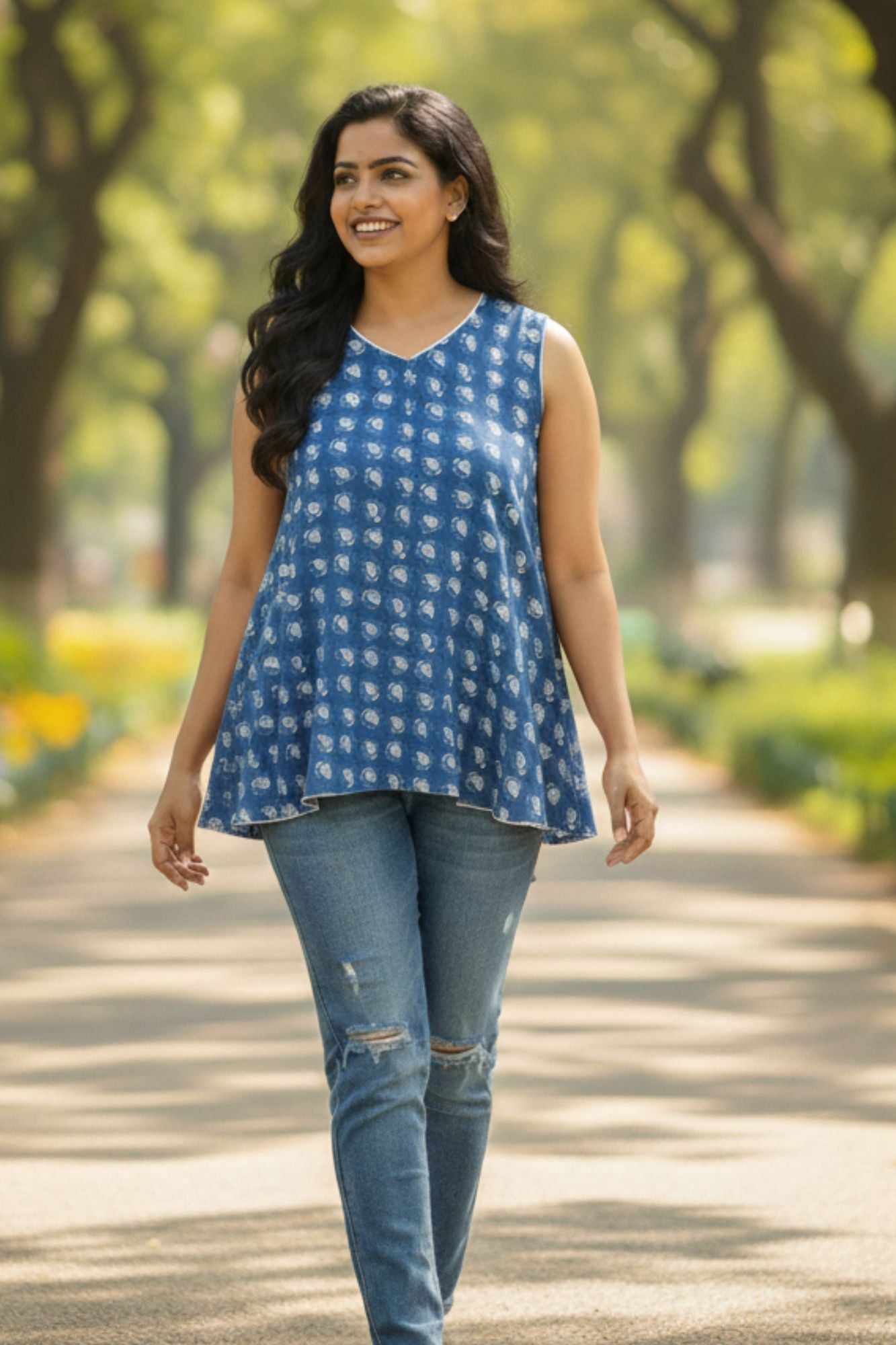 Blue Polka Maternity & Nursing Top (100% Cotton)