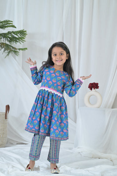 Peppy Blue Floral Kurta Set (2pc) (0-12 Yrs)