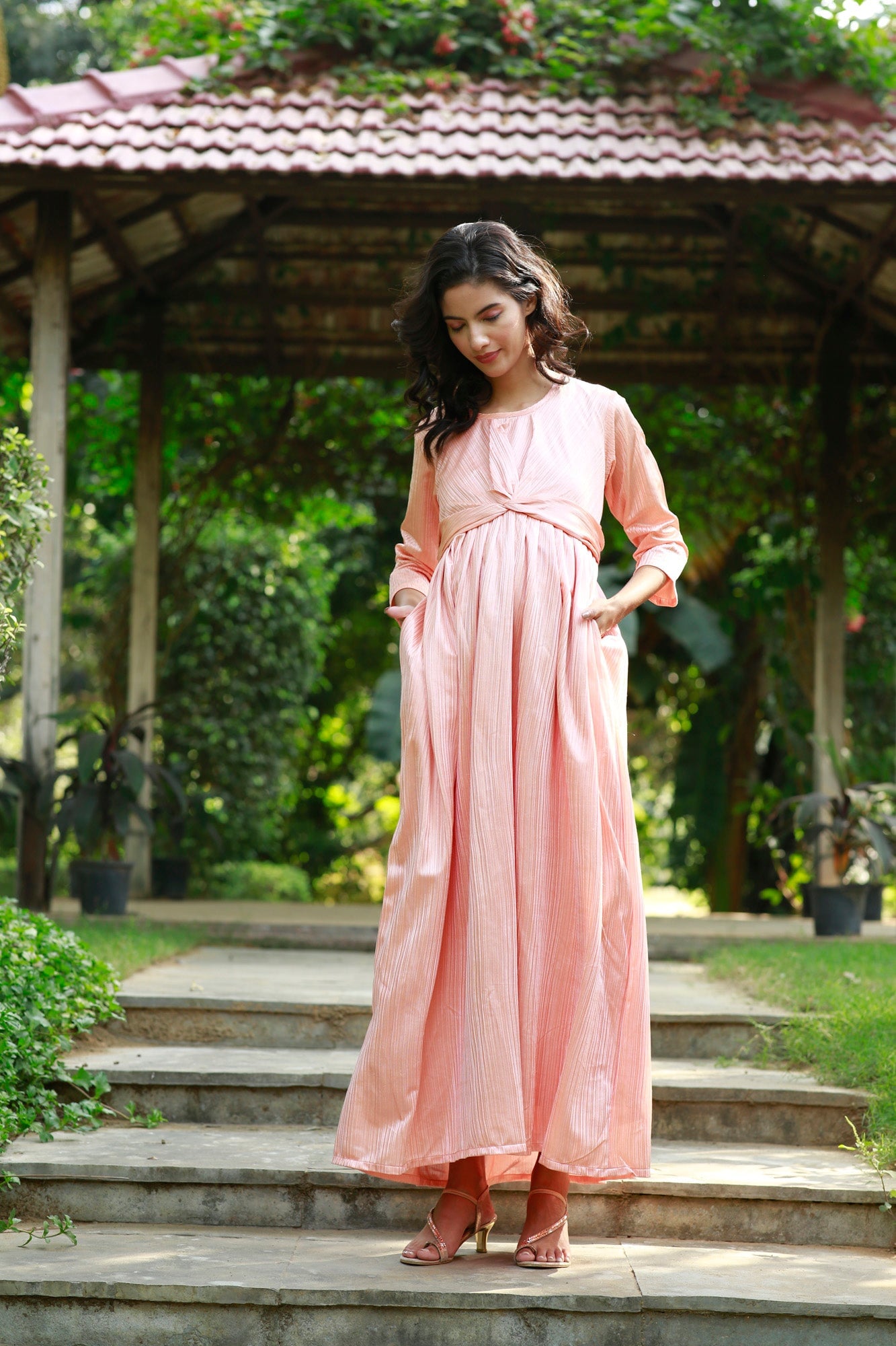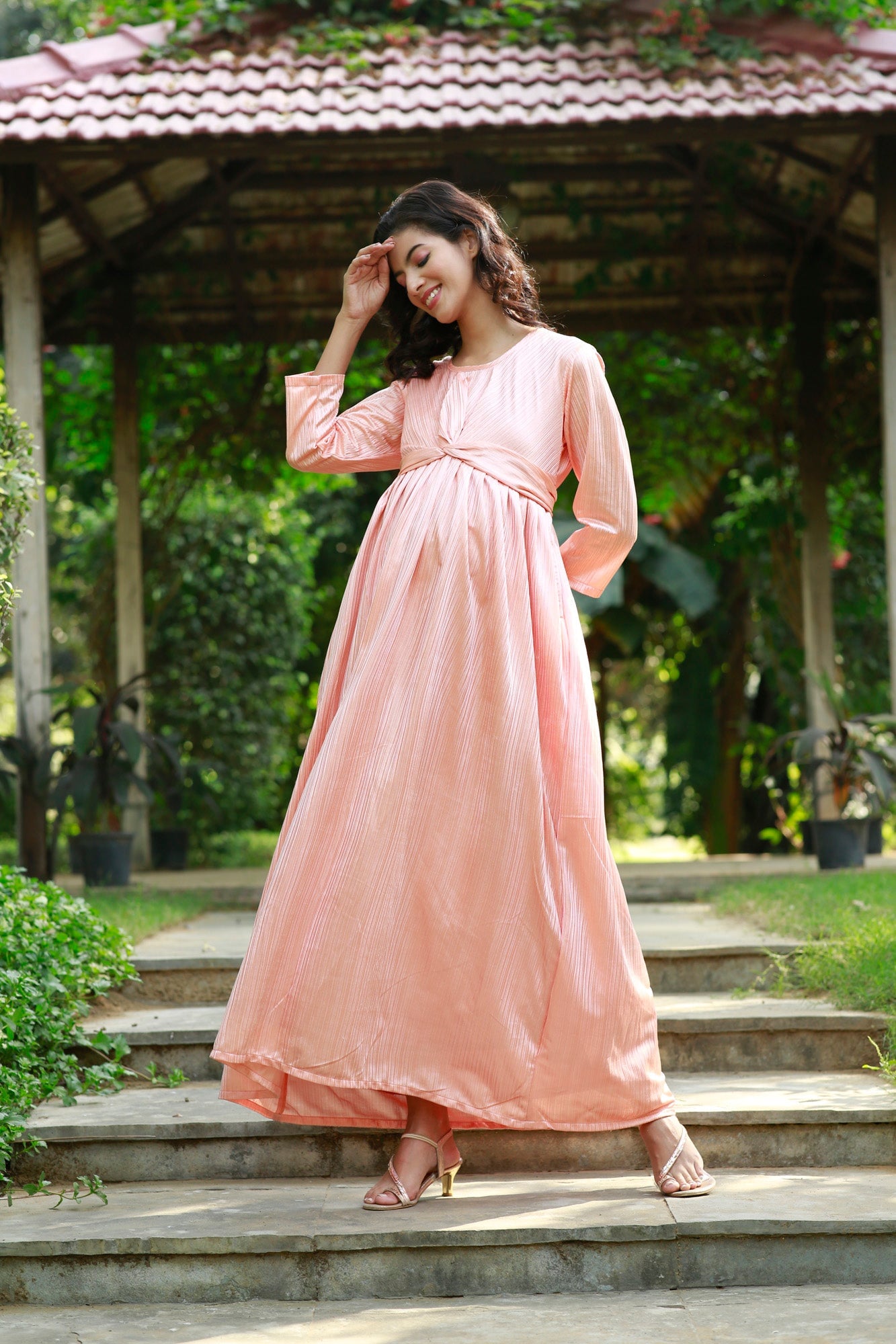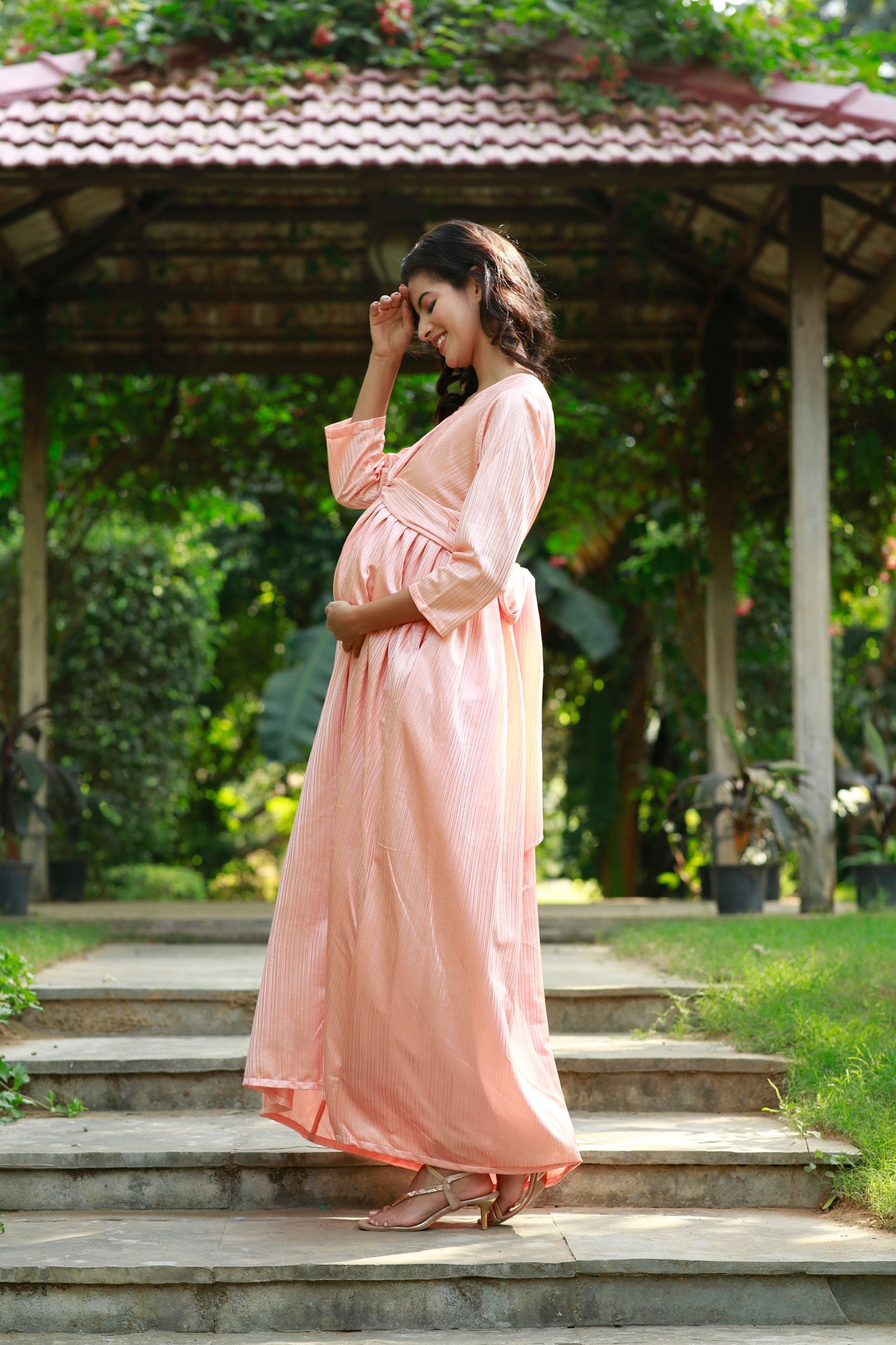 You can never go wrong with Momzjoy's knot dress that can be worn for any occasion. This dress has a great fit during and after pregnancy and flatters the bump with gathers. Made in trendy pleated fabric, you can wear this dress in all seasons. This is perfect for maternity photoshoots, baby showers, or a dinner date with your hubby.