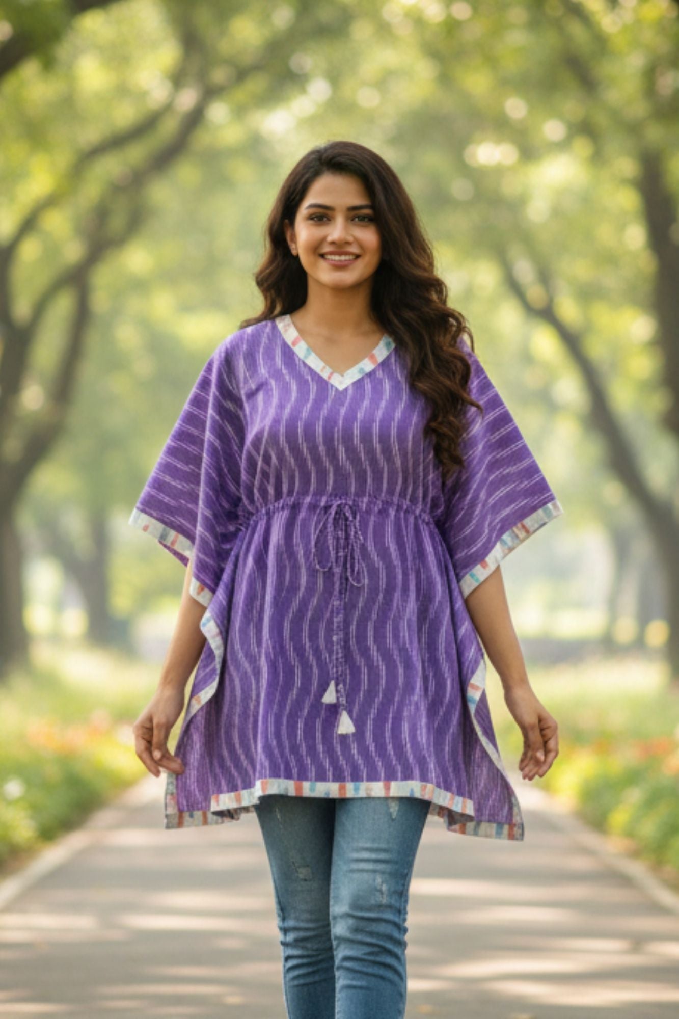 Lilac Stripe Maternity & Nursing Kaftan Top (100% Cotton)