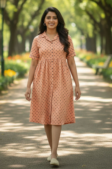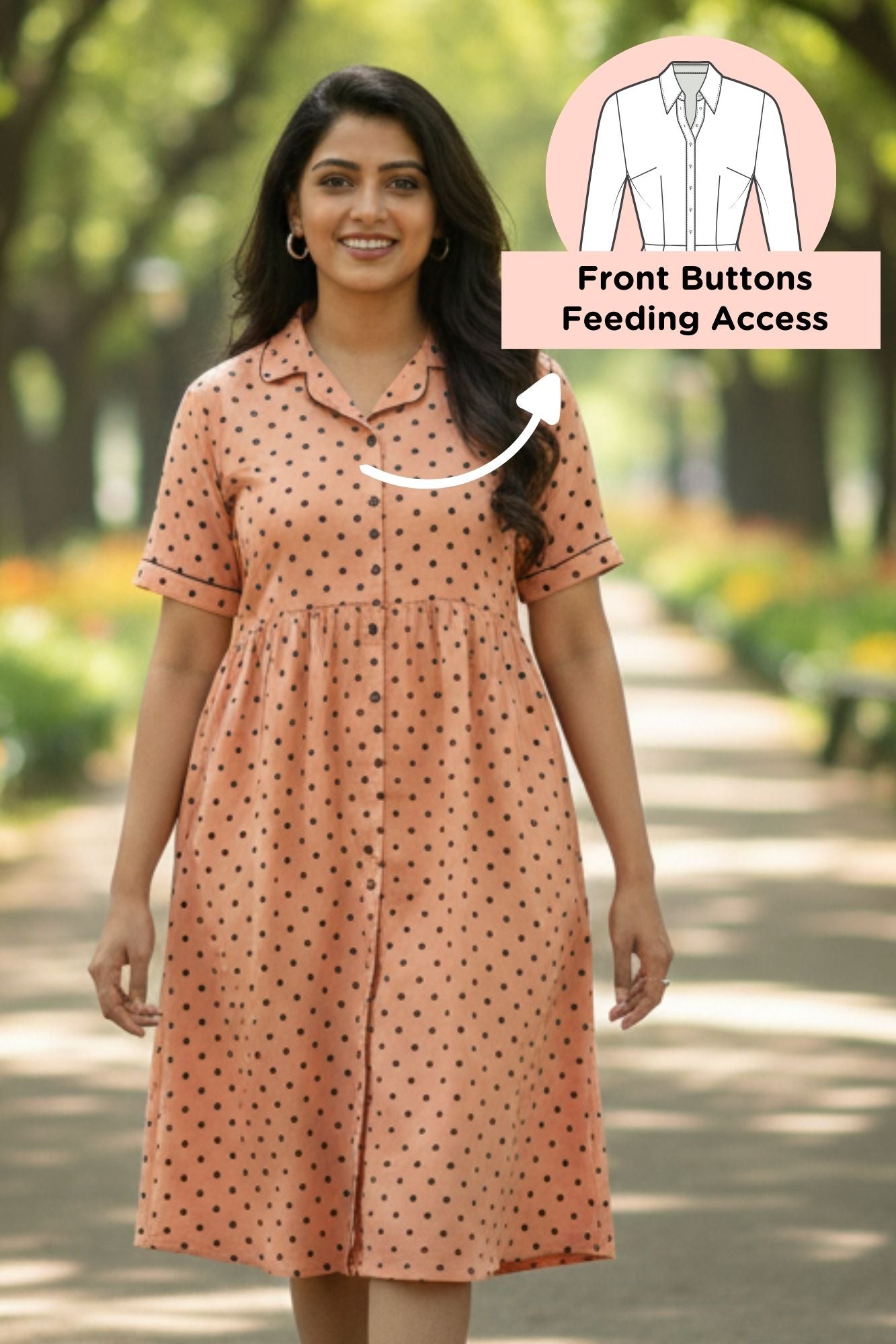 You will fall in love with our breezy cotton maternity dress. Made in soft cotton and cut for a relaxed fit, this dress drapes beautifully over your curves, allowing space for movement. Featuring a front button feeding access. This dress is ideal before, during, and after pregnancy.