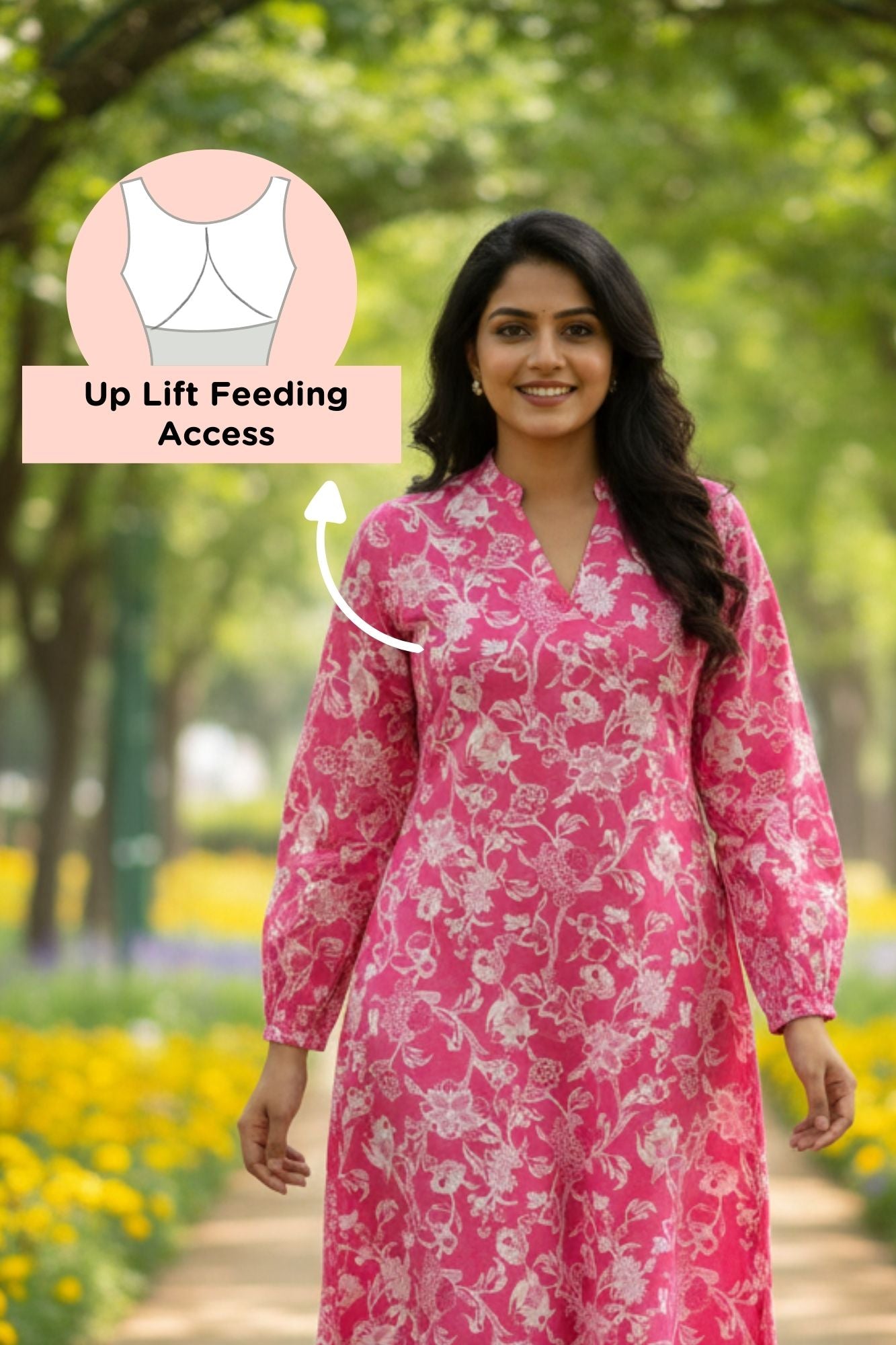 You will fall in love with our pretty pink maternity dress. Made in soft cotton and cut for a relaxed fit, this dress drapes beautifully over your curves, allowing space for movement. Featuring a front single zipper. This dress is ideal before, during, and after pregnancy.