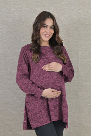 Purple Maternity & Nursing Side-Slit Sweater Winter Top