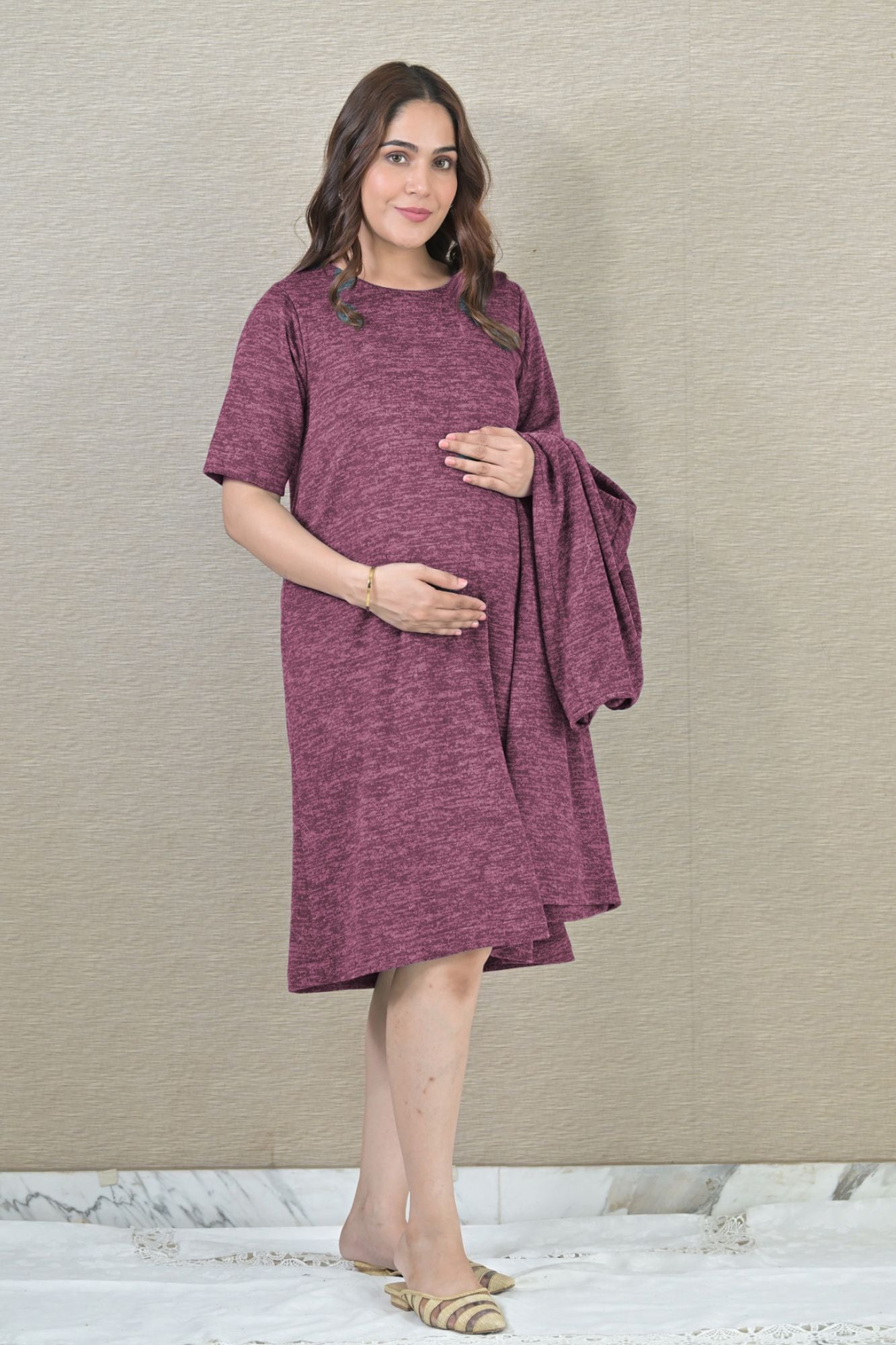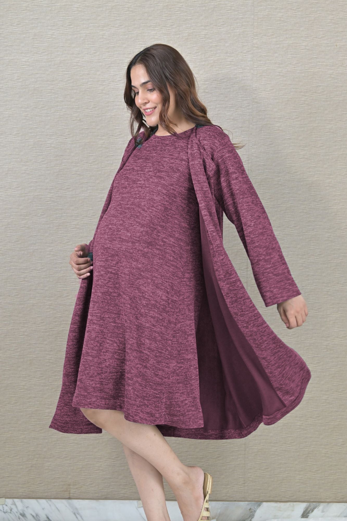 Purple Maternity Winter Dress With Cover Up (2pc)